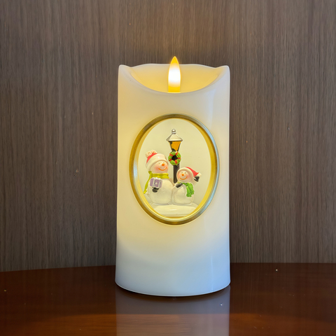 Decoración navideña Moving Xmas Snowman View y Music Wax Flameless Candle Light con LED